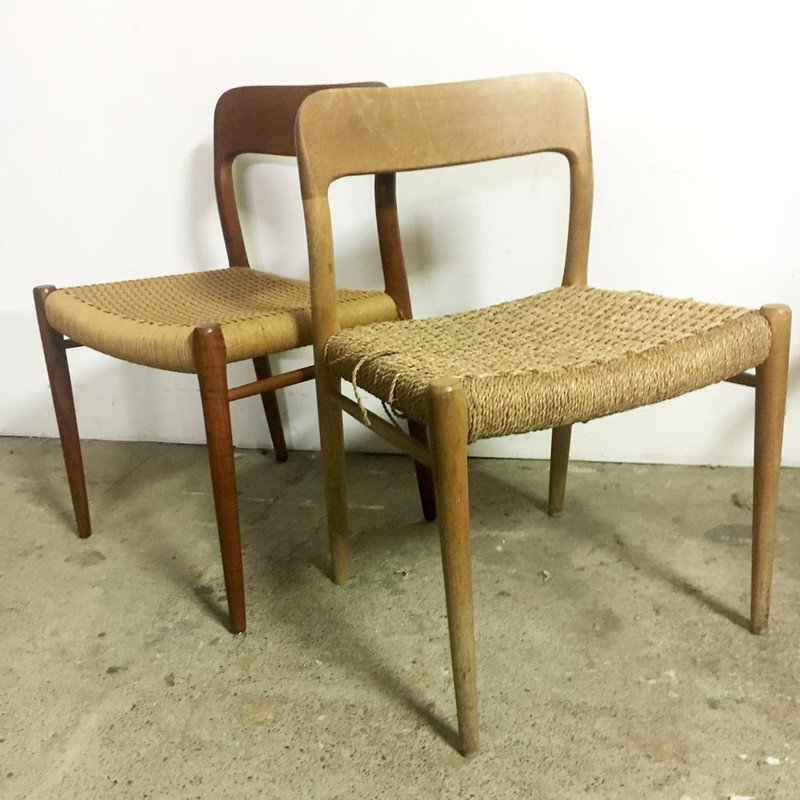 Danish cord is made from paper fiber which has been twisted together and is stable and flexible enough to be woven into many designs commonly used on furniture from the ‘50s, ‘60s and ‘70s. Danish cord has been used on chairs by designers such as Hans Wegner, Jens Risom and Niels Møller. Your seats will be restored and kept faithful to the original.
